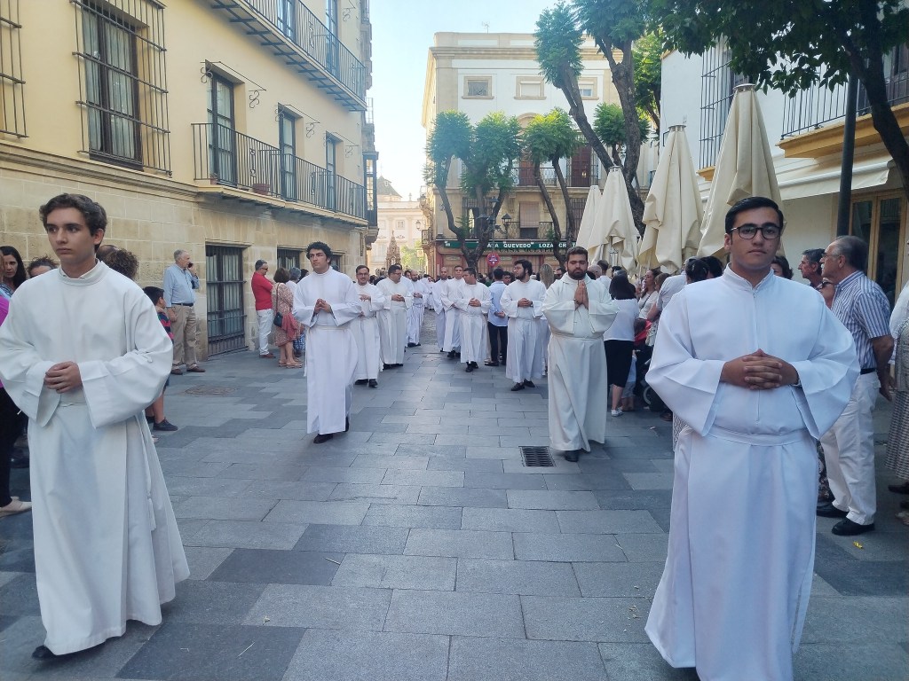 Este pasado domingo 2 de junio, como es tradición y obligación en nuestras Reglas, desde la reorganización en 1939, hemos acompañado al Dios Vivo y Verdadero por las calles de nuestra ciudad en la procesión del Corpus Christi.