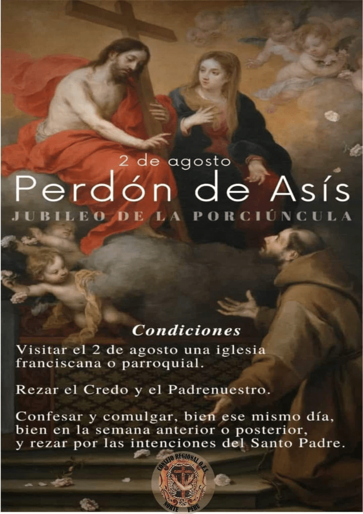El próximo viernes 2 de agosto, se podrá ganar la Indulgencia de la Porciúncula en nuestra sede canónica, la Iglesia Conventual de San Francisco.