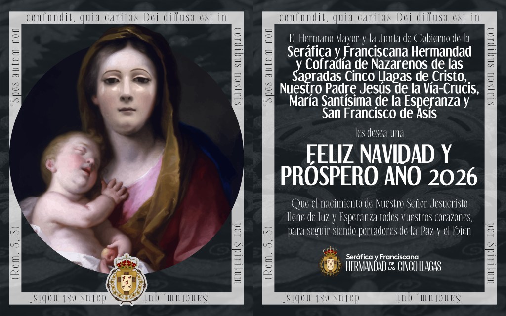 Felicitación de Navidad y Año 2026 de la Hermandad de las Cinco Llagas